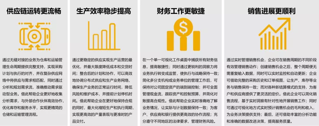 與其他行業(yè)相比,高科技企業(yè)更需要提高業(yè)務敏捷性,快速響應全球供應網(wǎng)絡,以此滿足日益苛刻的客戶需求并降低庫存和組件成本;同時他們同樣需要設法降低制造成本,提高響應能力和靈活性;通過更好的業(yè)務洞察力保持健康的財務狀況,為業(yè)務決策提供依據(jù);同時,他們還需要在所有渠道上創(chuàng)建有針對性的銷售動作,實現(xiàn)銷售和渠道工作的自動化,以更靈活的定價和計費模式滿足客戶個性化的體驗與服務。